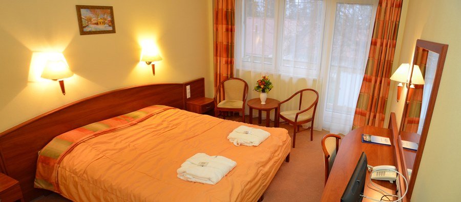 Hungarospa Thermal Hotel *** имеет всего 117 номеров кондиционируемых номеров, 120 местный конференц-зал, собственное лечебное отделение. 4-этажный отель оснащен центральным кондиционером и лифтом. В отеле находятся 105 двухместных номеров, 3 апартамента, 6 трёхместных семейных номеров, кроме того 3 одноместных номера для инвалидов. Все номера оснащены с душевой (с часть с ванной), спутниковым телевидением, телефоном, сейфом и мини-баром. Апартаменты отлично подходят для размещение семей – тут есть гостинная, спальня и ванная.Галерея
