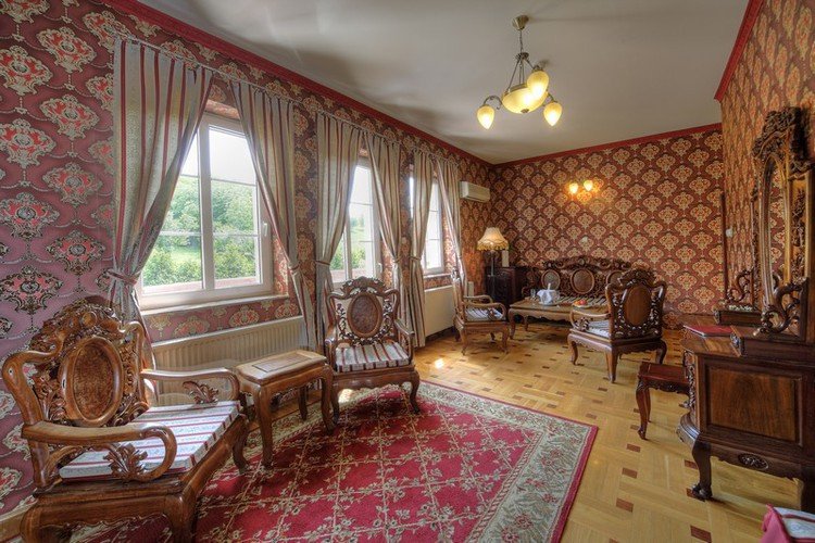 Конечно, прекраснее всех – номер люкса. Резная мебель ручной работы в номере люкса - как и обстановка всего замка - является уникальной. Номер люкса имеет балкон, в старинном стиле, откуда открывается прекрасный вид на парк и живописные холмы с виноградниками. Номер люкс, как и все номера Замка имеют кондиционер воздуха, поэтому летняя жара не нарушает покоя отдыхающих.