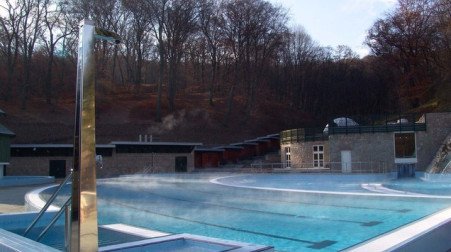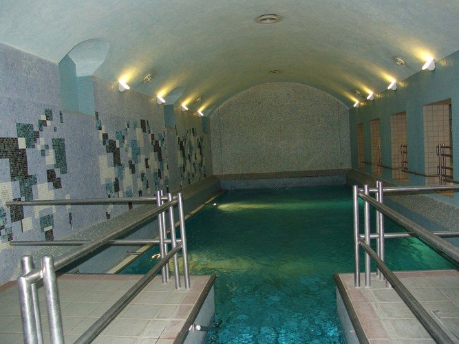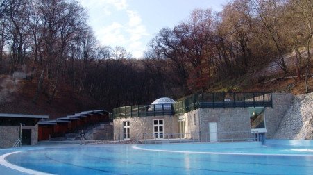 В этом уникальной для Европы природном бассейне приятно плавать, нырять, дышать чистым, свободным от всяких загрязнений воздухом. Многие убеждены в лечебных свойствах купальни, которые объясняются здоровым климатом пещеры, а также теплыми карстовыми водами. Эта термальная вода не такая плотная, как лечебные воды (концентрация всех солей в термальной воде, используемой в комплексе купален, меньше 1000 мг/л). В ней можно купаться, не ограничивая себя во времени. Купальня постоянно расширяется: к знакомым многим пещерным бассейнам добавляются новые галереи, естественные штольни и залы. «Шаровой зал» ждет любителей веселых сюрпризов, а в расположенном по соседству с ним огромном джакузи гостей массируют подводные струи. Чуть дальше, плывя по течению или против него по движимой скрытым механизмом «подземной реке», мы попадаем в бассейн, расположенный в самом старом и красивом участке пещеры. В Пещерной купальне не бывает летних и зимних сезонов. В галереях всегда – весна, независимо от уличной жары или лютого мороза.