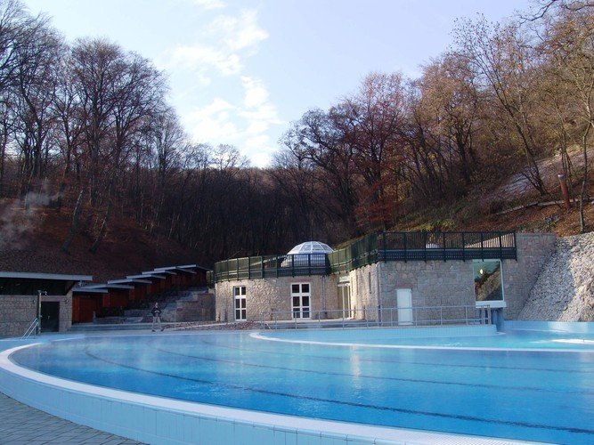 Купальня в пещере Уникальная пещерная купальня находится в богатой туристическими достопримечательностями Северной Венгрии, в курортной зоне города Мишкольц. степь), Матра, Бюкк, Земплен (горы, леса, охота) и т.д. Мишкольц, населенный пункт, родившийся в период Обретения Родины венграми, за свою тысячелетнюю историю превратился в крупный город с развитой инфраструктурой и богатой культурной жизнью. По соседству с городом (в 7 км от его центра) расположился курорт Мишкольцтапольца, с уникальным микроклиматом, заповедным парком, озером и пещерной купальней (открыта в 1959 г.), устроенной в образованной лечебными термальными водами естественной пещере. Летом на территории в 7 га здесь также гостей принимает также открытая купальня с водной поверхностью 4500 кв. м. Настоящим сокровищем поселка является преобразованная в пещерную купальню Озерная пещера, вымытая на протяжении тысячелетий в твердых известняковых породах.